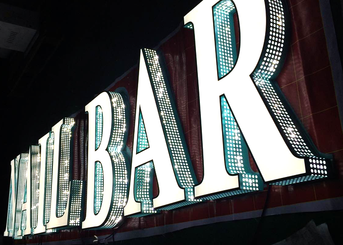 不锈钢边灯箱字:先用折弯机将字壳的边框折弯曲,焊接上边带,前部用亚克力透光板,然后用1~50 px的PVC板作为底箱或底部箱用铁皮焊接。最后安装LED灯,电源接通。适当店面招牌、形象墙招牌等。